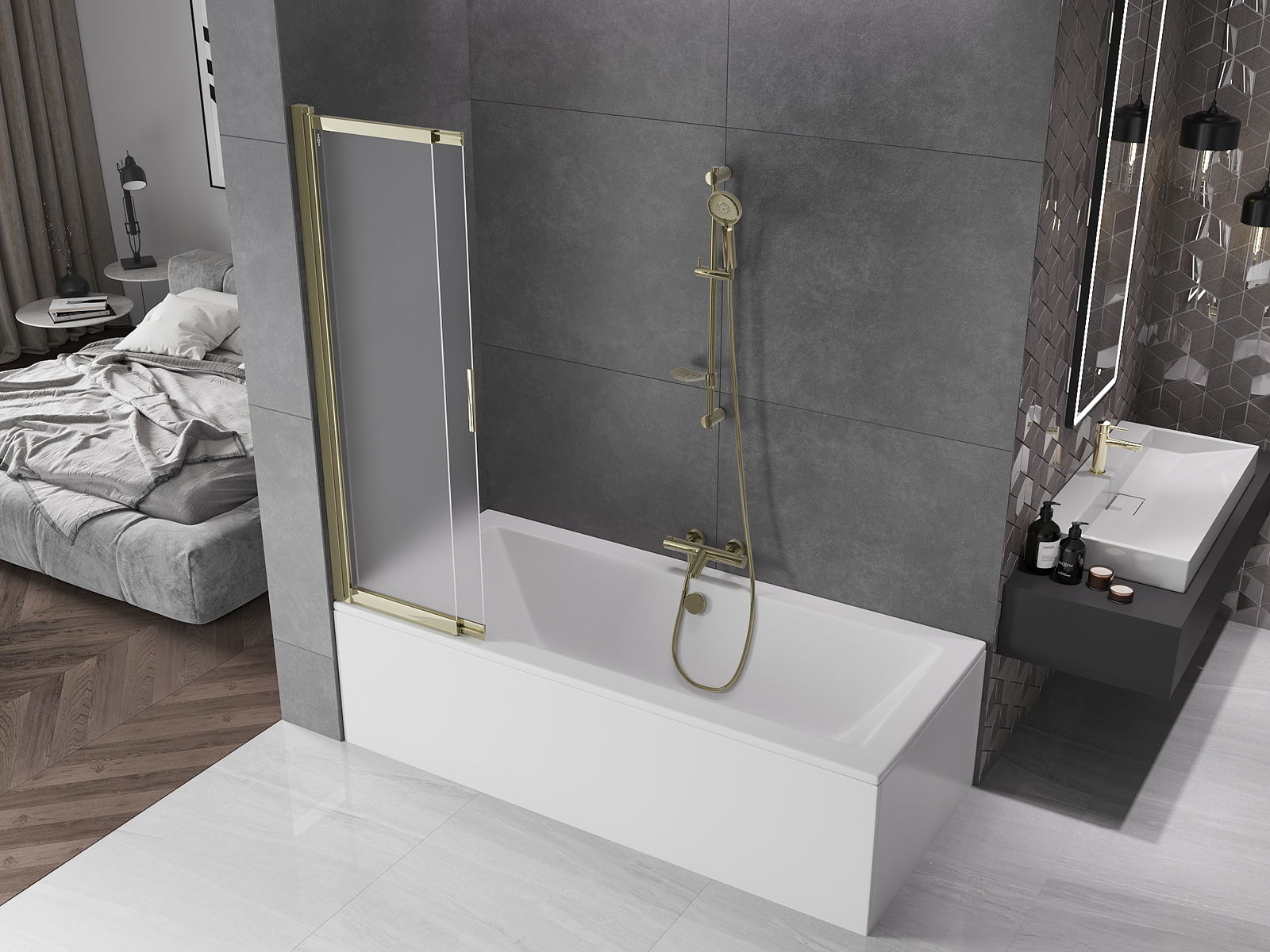 Mexen Fox badwand scherm 2-delig schuifbaar 85 x 150 cm, mat, goud - 891-085-002-50-30