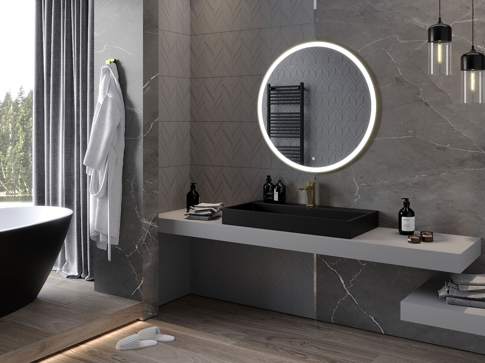LED-verlichting op de spiegel is een praktisch element dat de dagelijkse verzorging vergemakkelijkt door het gezicht perfect te verlichten. Het voegt een moderne touch toe aan de badkamer en benadrukt de elegante inrichting.