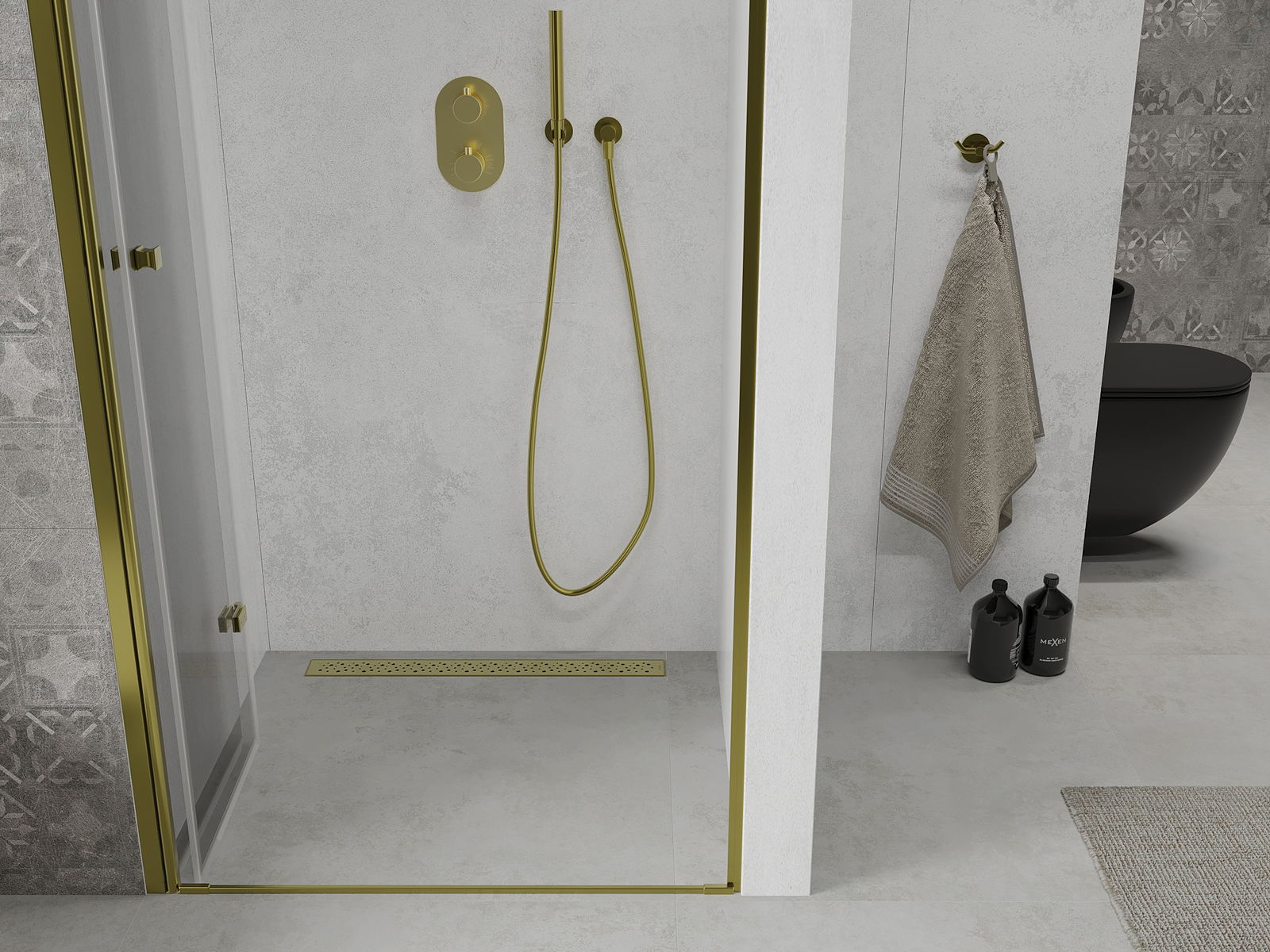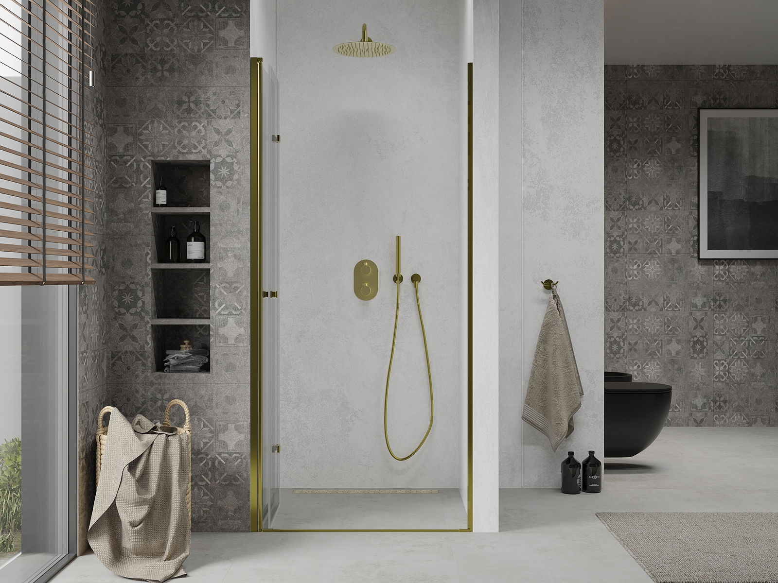 Mexen Lima opklapbare douchedeur 80 cm, transparant, goud - 856-080-000-50-00