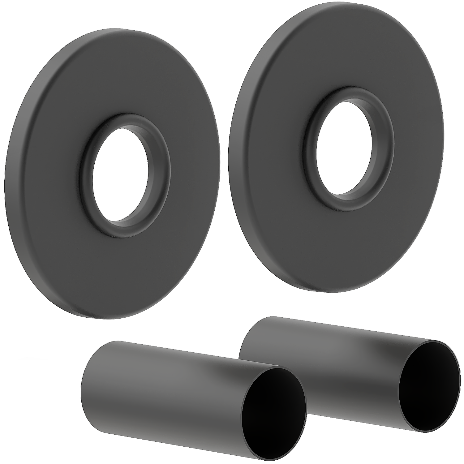 De afdekkapset bestaat uit twee enkele rozets en bussen voor de montage van thermostatische sets en radiatorkranen