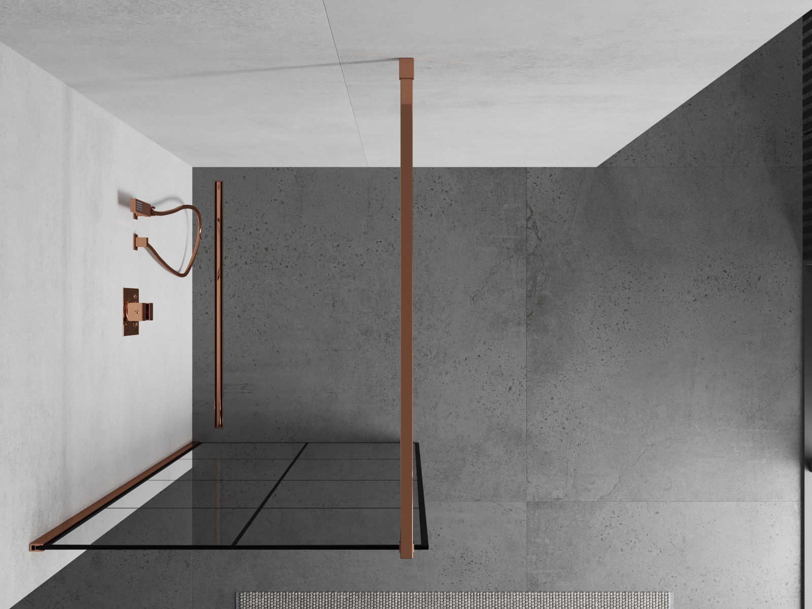 Mexen Kioto douchewand Walk-in 70 x 200 cm, zwart raster 8 mm, roze goud - 800-070-101-60-77