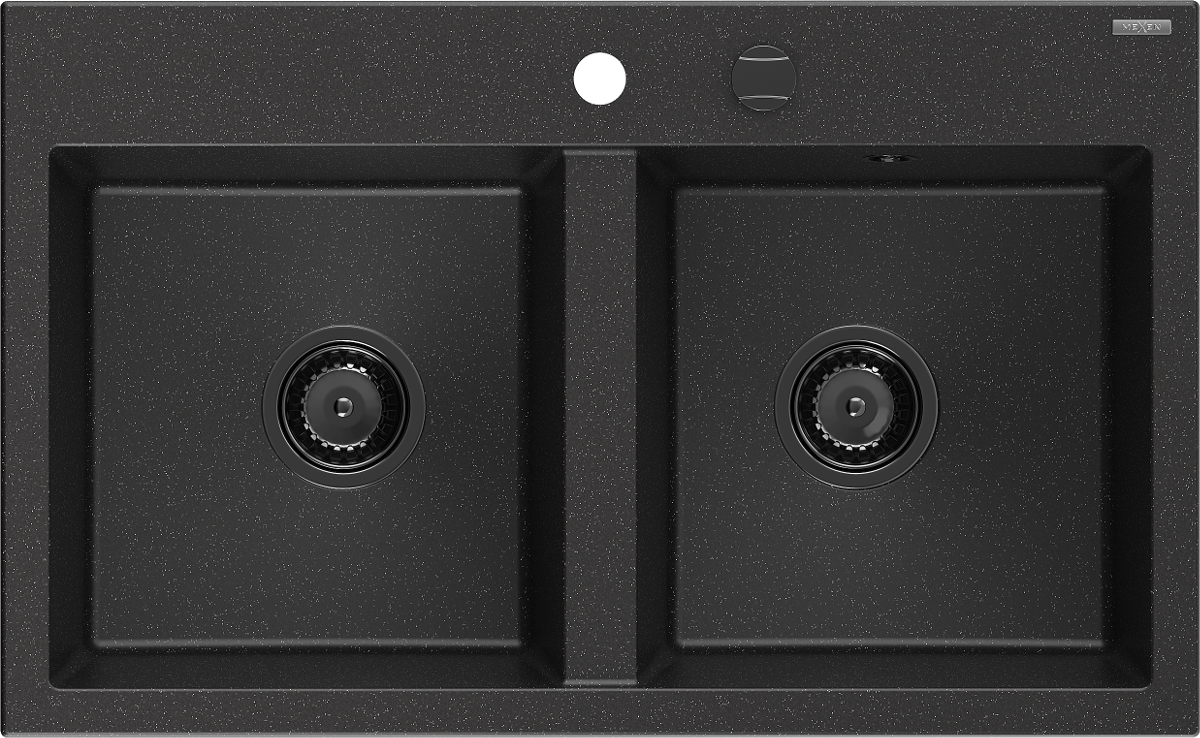 Mexen Hektor granieten gootsteen 2-komoren 800 x 480 mm, zwart/zilveren metallic, zwarte sifon - 6521802000-73-B