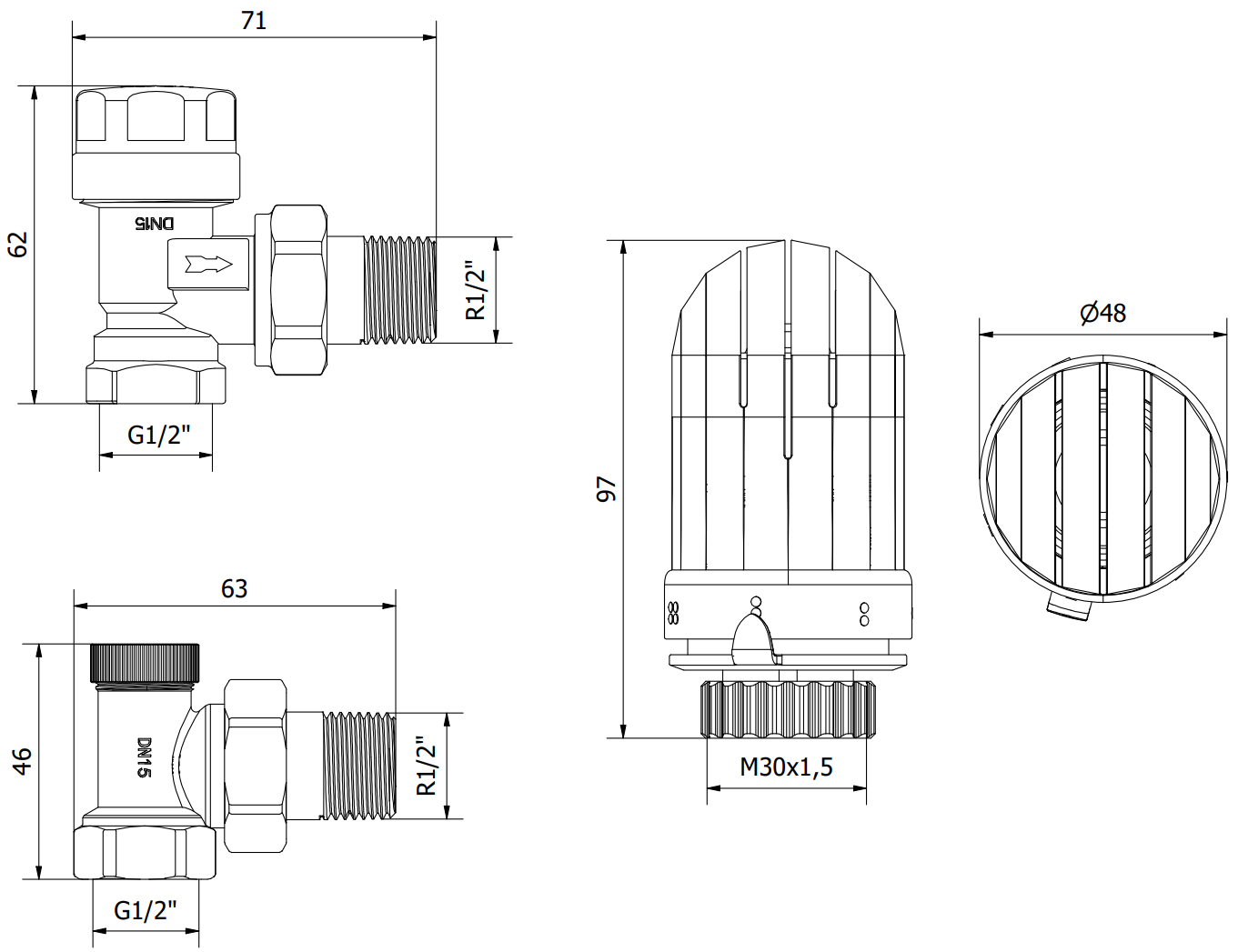 Draad van de kop: M30 x 1,5 mm