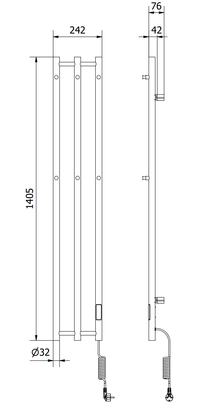 Mexen Pino elektrische radiator met handdoekhaken 1405 x 242 mm, 200 W, zwart - W301-1405-242-00-70