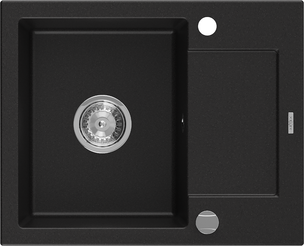 Mexen Enzo granieten gootsteen 1-komor met afdruiprek 576 x 465 mm, zwart, sifon chroom - 6506571005-77