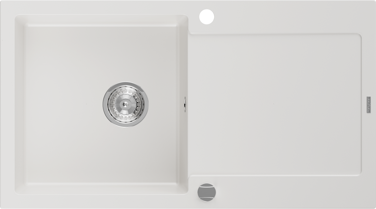 Mexen Leo granieten gootsteen 1-komerig met afdruiprek 900 x 500 mm, wit, sifon chroom - 6501901010-20