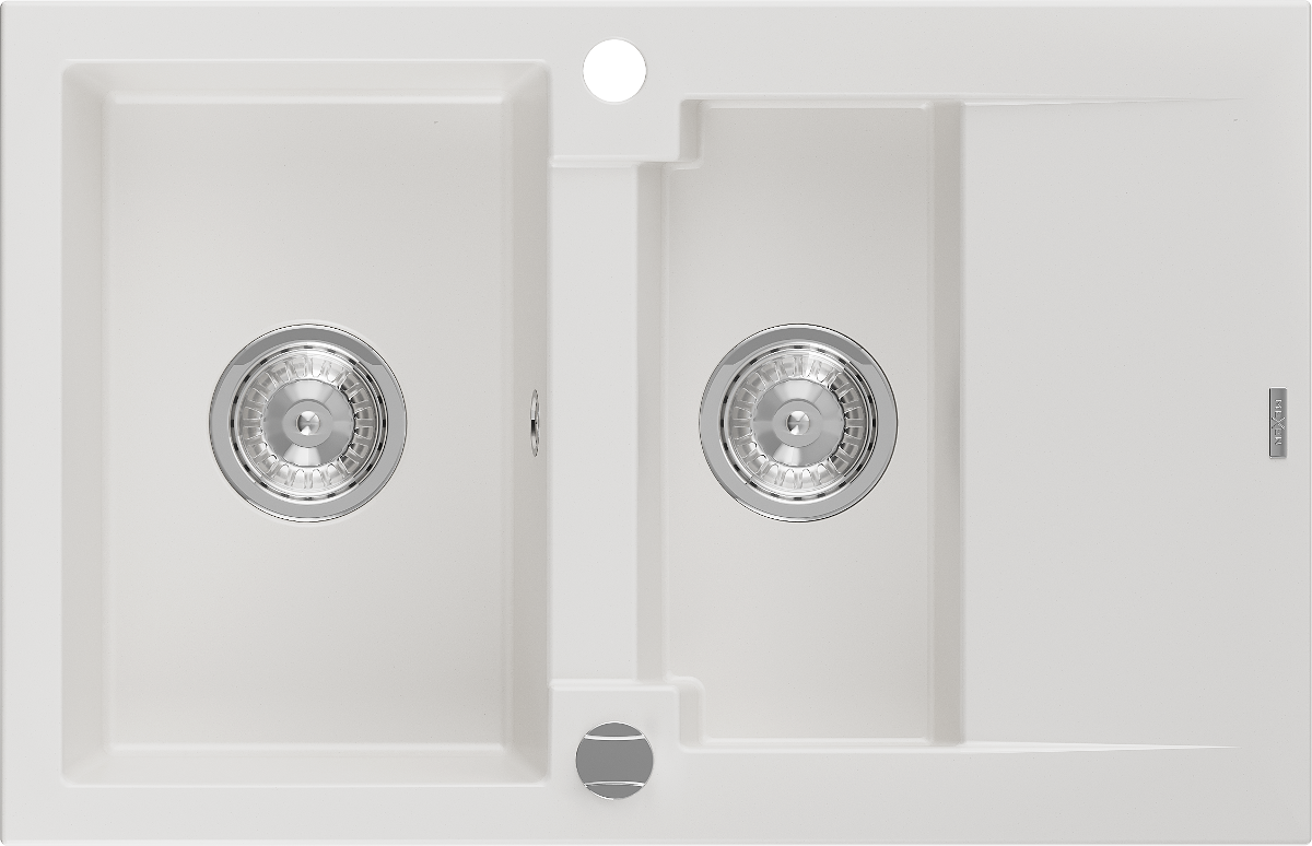 Mexen Gaspar granieten gootsteen met 1,5 bak en afdruiprek 737 x 475 mm, wit, chroom sifon - 6507731505-20