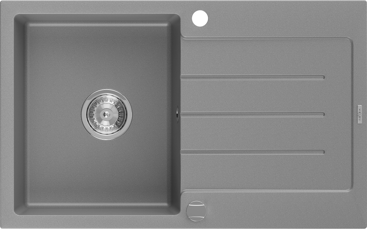 Mexen Bruno granieten spoelbak 1-kompartment met afdruiprek 795 x 495 mm, grijs, sifon chroom - 6513791010-71