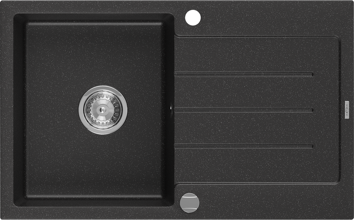 Mexen Bruno granieten wastafel 1-kompartement met afdruiprek 795 x 495 mm, zwart/zilver metallic, sifon chroom - 6513791010-73