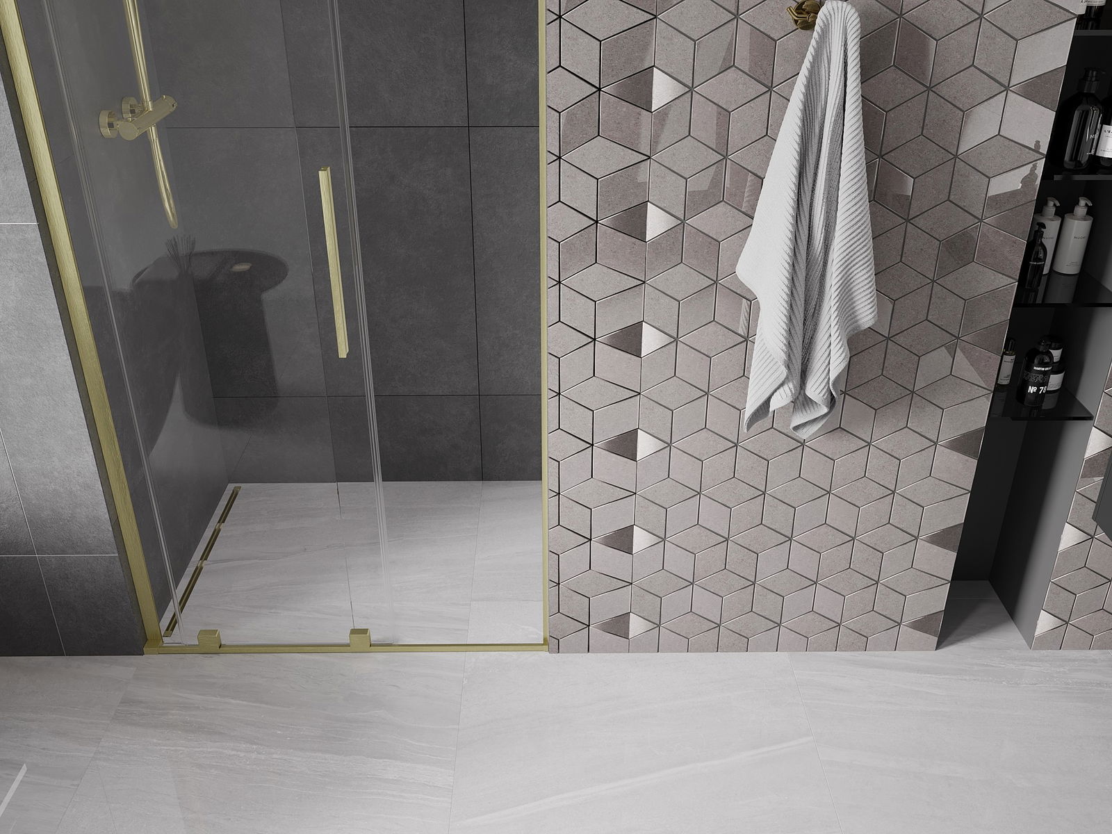 De handige en comfortabele handgreep is gemaakt van roestvrij staal. De modieuze vorm, gecombineerd met een afwerking die qua kleur aansluit bij de profielen, geeft het geheel een moderne en stijlvolle uitstraling en versterkt de esthetiek van elke badkamer.