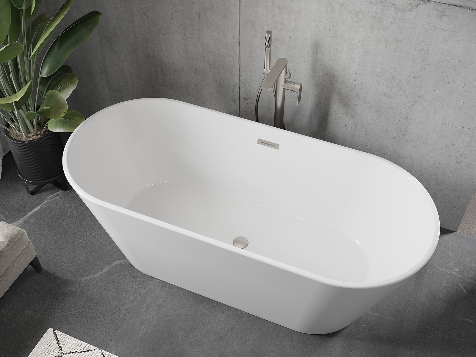 Mexen Flavia vrijstaande badkuip 170 x 75 cm, wit, overloop geborsteld nikkel - 54031708000-97