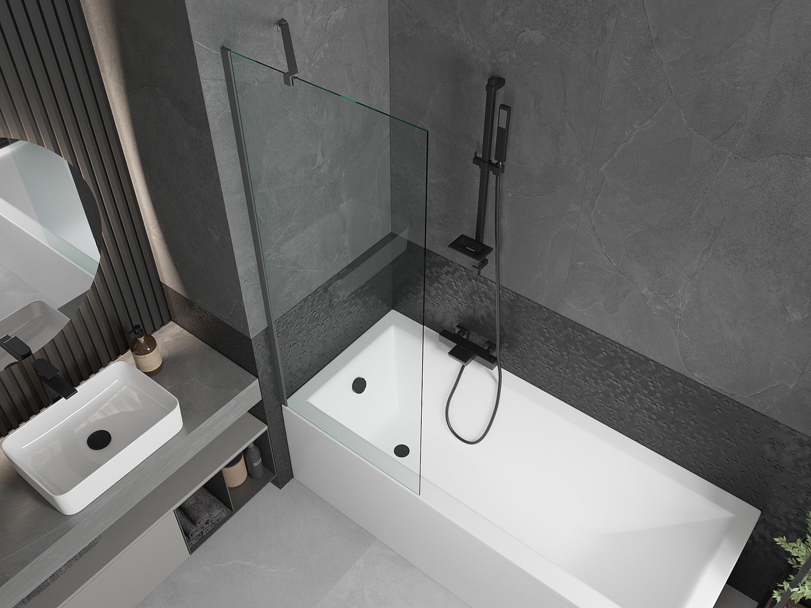 Effectieve bescherming tegen waterspatten tijdens het baden. Het scherm heeft afdichtingen die perfect aansluiten op de glasplaat en de badrand. Een functionele oplossing die veiligheid en eenvoudige reiniging garandeert.