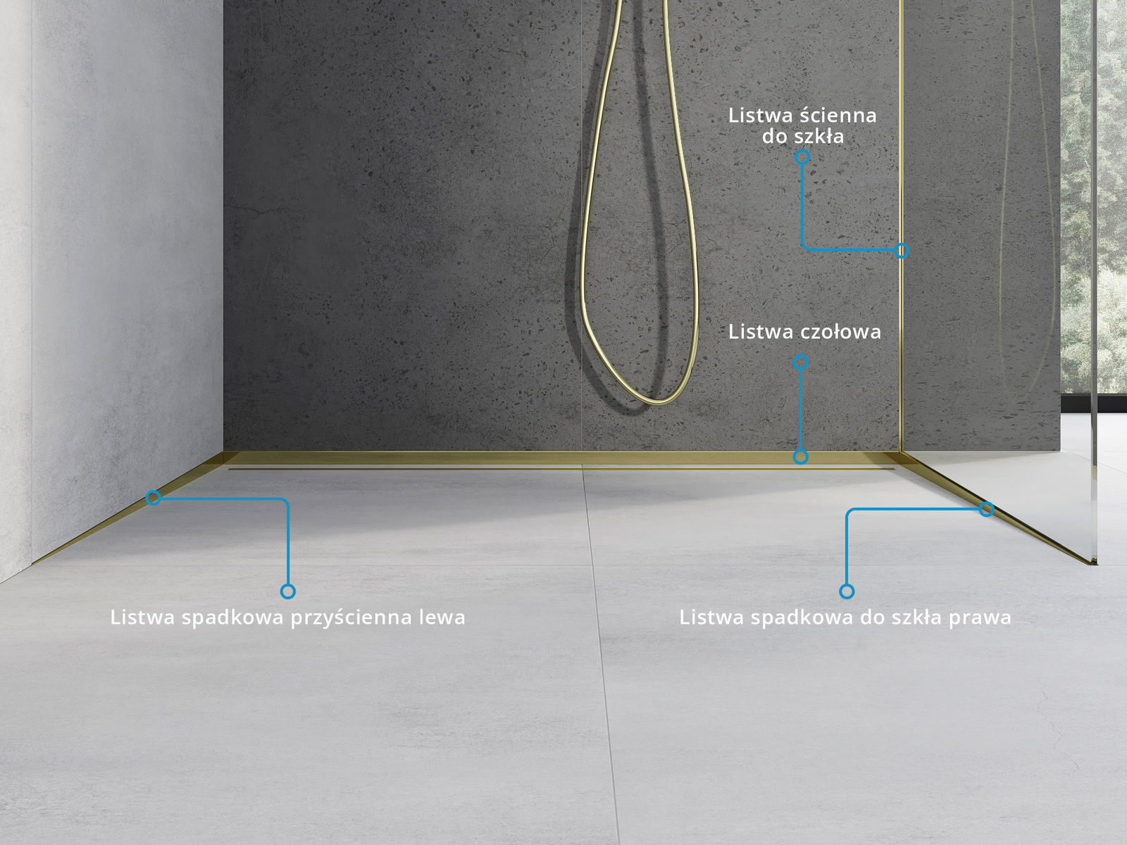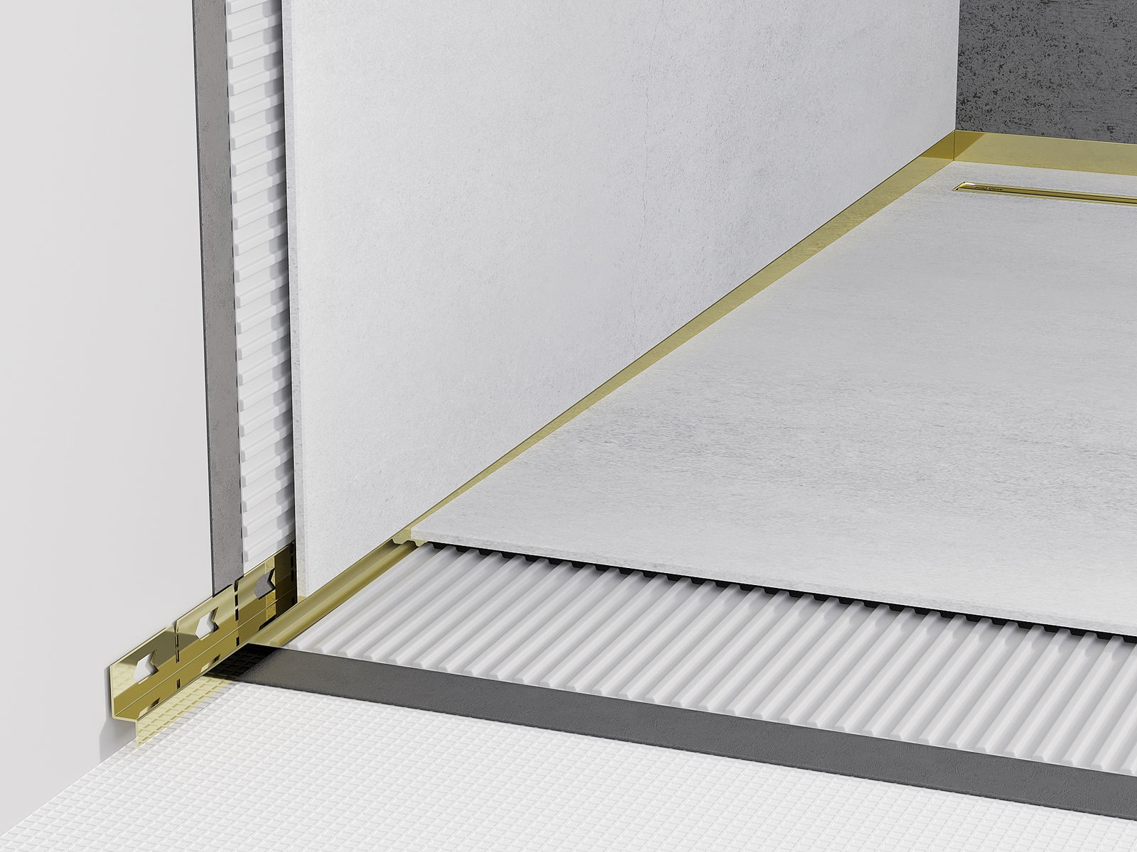 De aflopende strip heeft een nauwkeurig afgestelde hoek die water effectief naar de afvoer leidt en voorkomt dat het zich ophoopt op het vloeroppervlak. Dit zorgt voor een effectieve afvoer van water, minimaliseert de kans op plassen en zorgt voor een droog en veilig oppervlak.