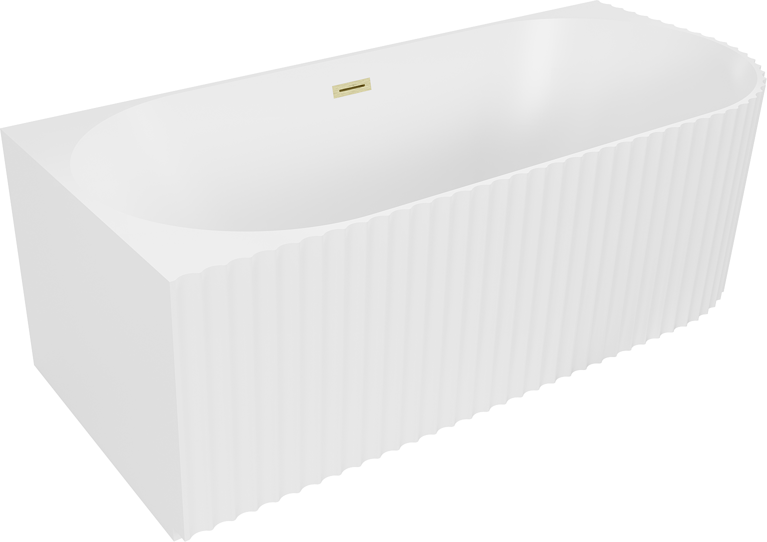 Mexen Gia vrijstaande hoekbadkuip geribbeld links 150 x 75 cm, wit mat, overlopen geborsteld goud - 52701507501L-55