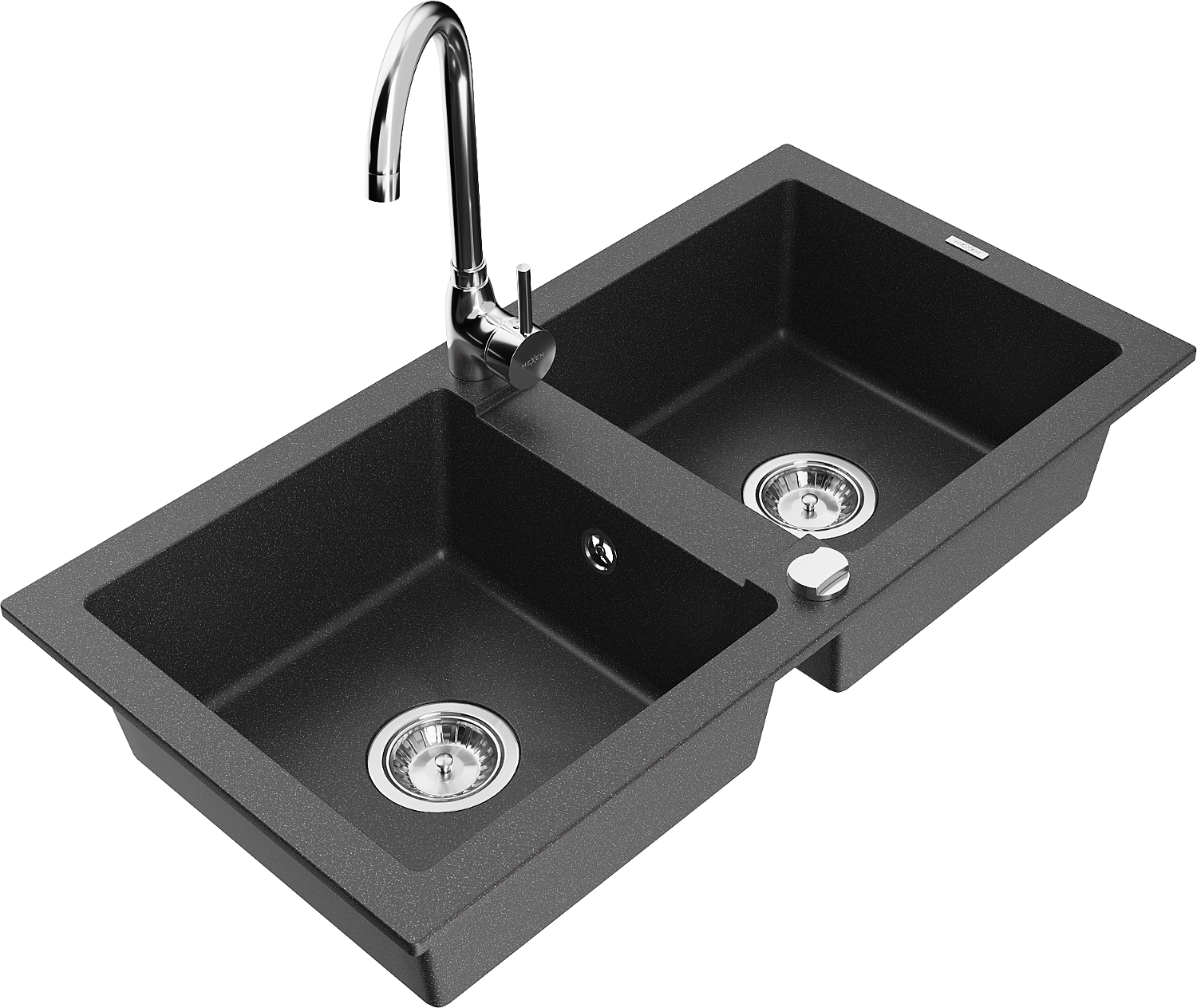 Mexen Mario granieten gootsteen met 2 kamers en keukenkraan Telma, zwart gespikkeld - 6504-76-670200-00