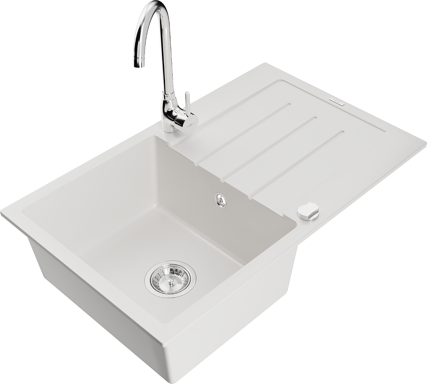 Mexen Bruno granieten spoelbak 1-komerig met afdruiprek en keukenkraan Telma, wit - 6513-20-670200-00