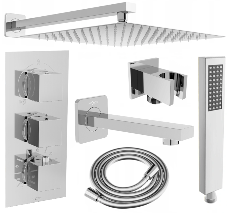 Mexen Cube DR02 inbouwbad-douche set met regendouche 25 cm, chroom - 77503DR0225-00