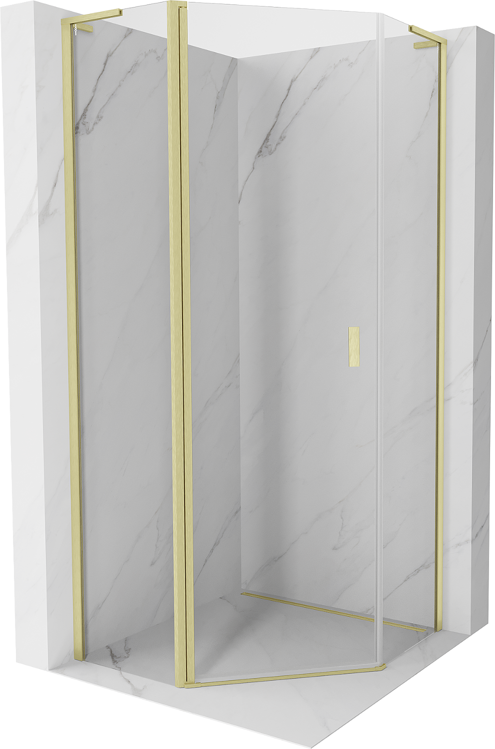 Mexen Mist L vijfhoekige douchecabine scharnierend 80 x 80 cm, transparant, goud geborsteld - 8A8L-080-080-55-00