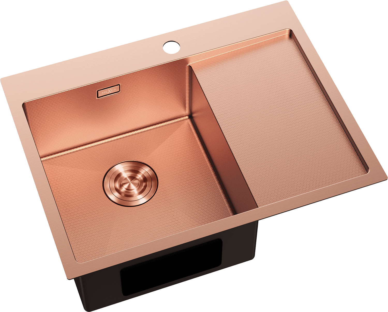 Mexen Exar stalen gootsteen 1-kamer met afdruiprek links 620 x 480 mm, koper HC - 6431621005L-65HC