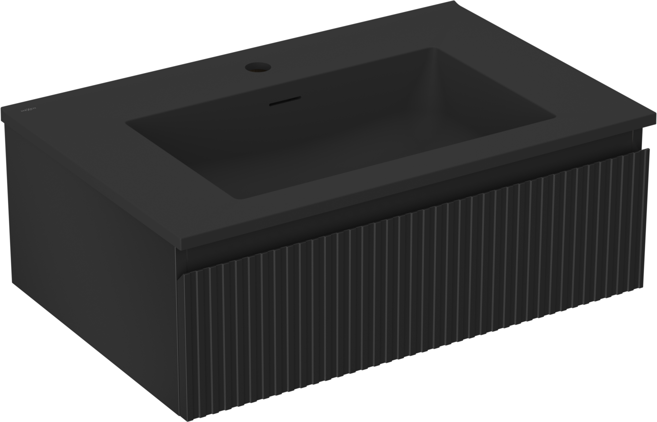 Mexen Rivel badkamerkast 70 cm met wastafel Otis, 1 lade, geribbeld, zwart mat - 91A20-07023-1-BF71-W18M71