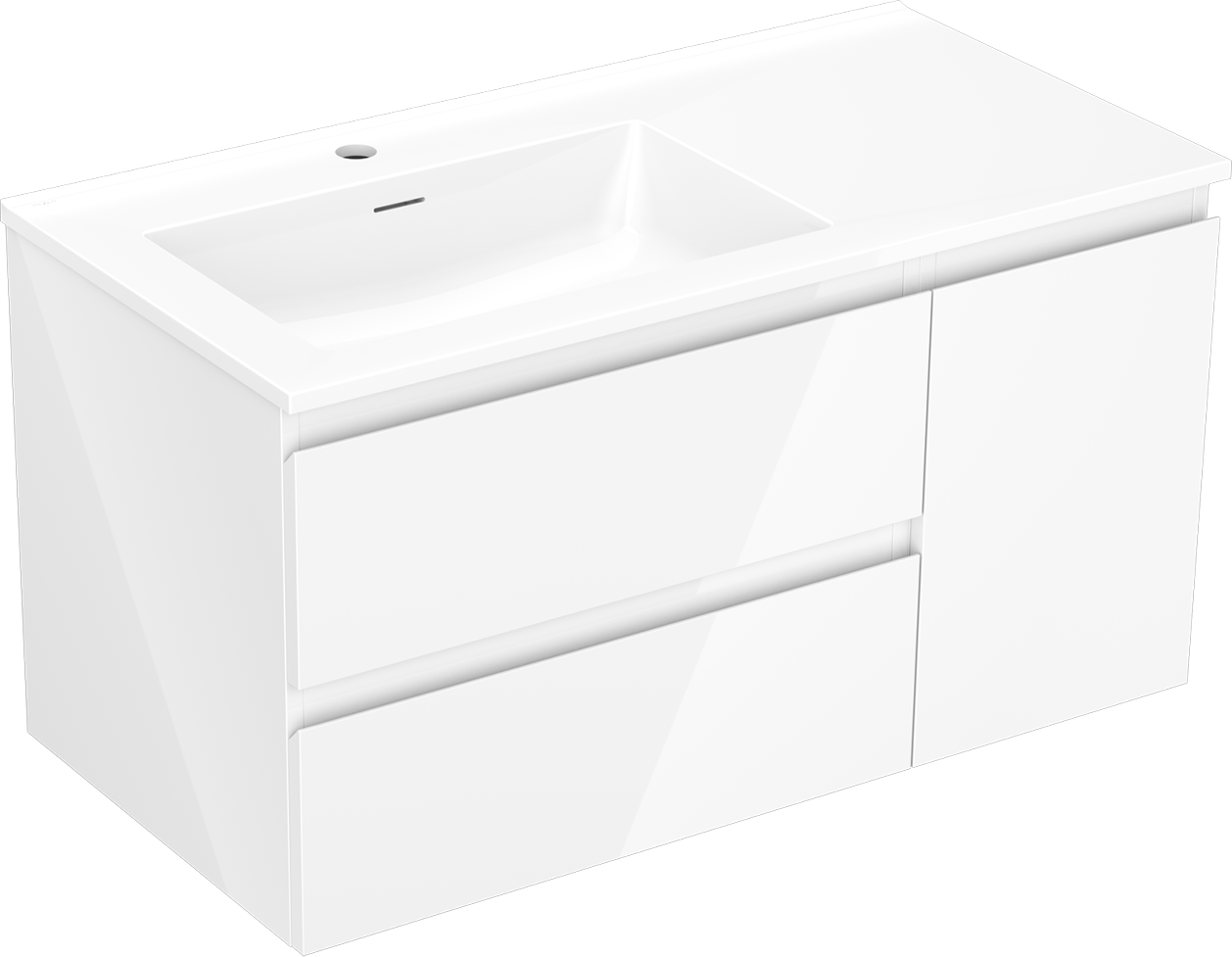 Mexen Orio badkamerkast 90 cm met wastafel Otis links, 2S, 1D, witte glans - 91A13-09047-3-BBFFF00-W18L00