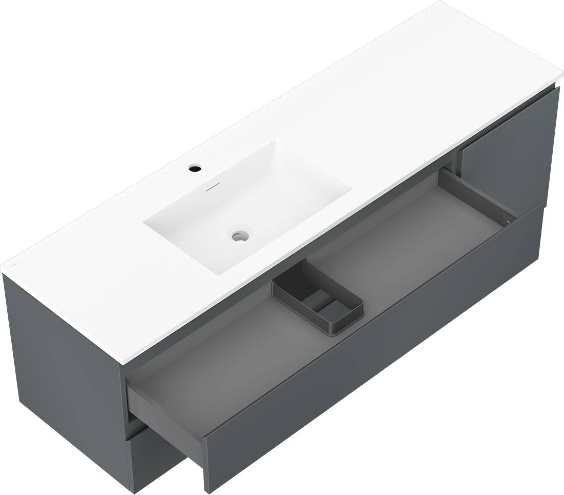 Mexen Orio badkamerkast 160 cm met Otis wastafel links, 2S, 1D, grafiet mat/wit mat - 91A13-16047-3-BBFFF66-W18L01