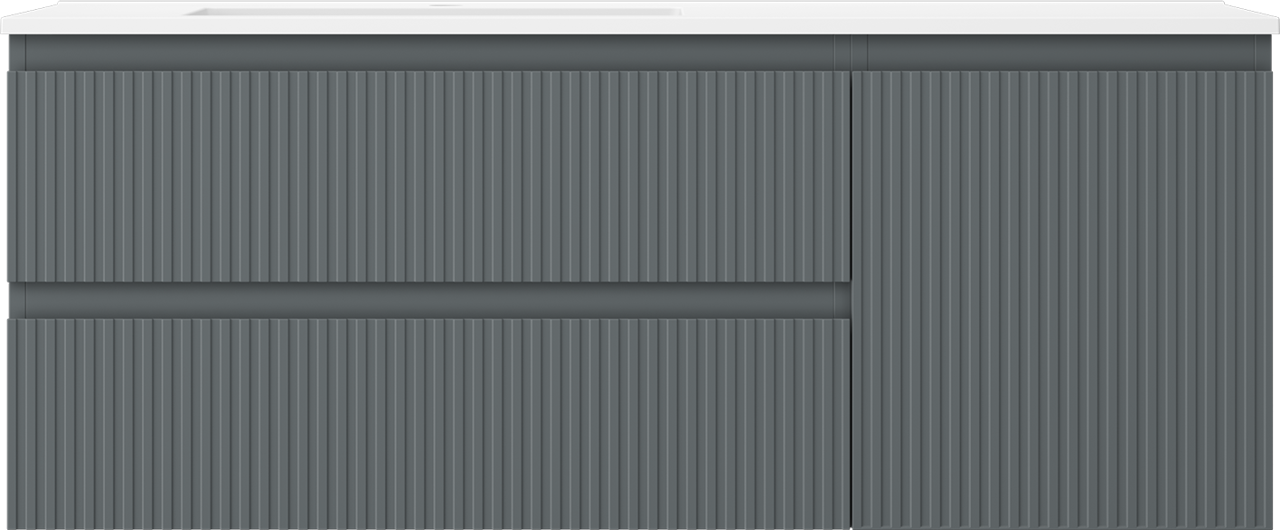 Mexen Rivel badkamerkast 120 cm met Otis wastafel links, 2S, 1D, gegroefd, grafiet/wit mat - 91A23-12047-3-BBFFF66-W18L01