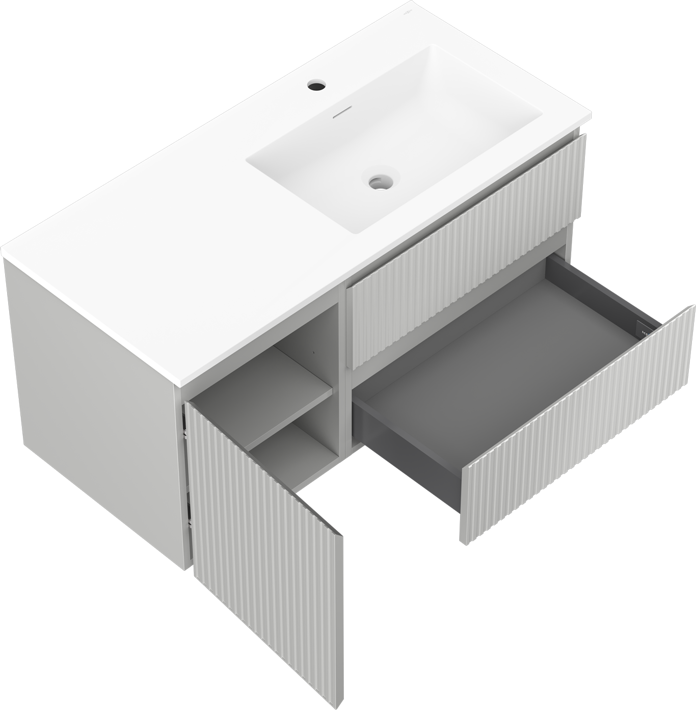 Mexen Rivel badkamerkast 100 cm met wastafel Otis rechts, 2S, 1D, gegolfd, grijs/wit mat - 91A23-10047-3-BBFFF62-W18P01