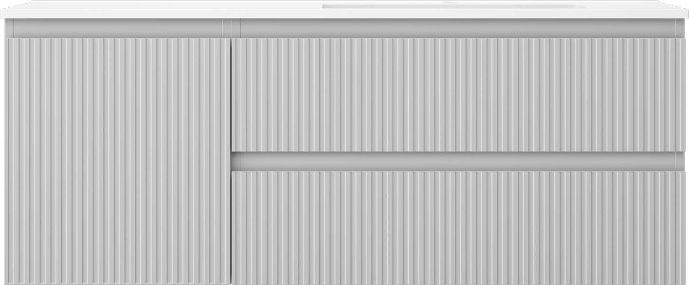 Mexen Rivel badkamerkast 120 cm met wastafel Otis rechts, 2L, 1D, geribbeld, grijs/wit mat - 91A23-12047-3-BBFFF62-W18P01