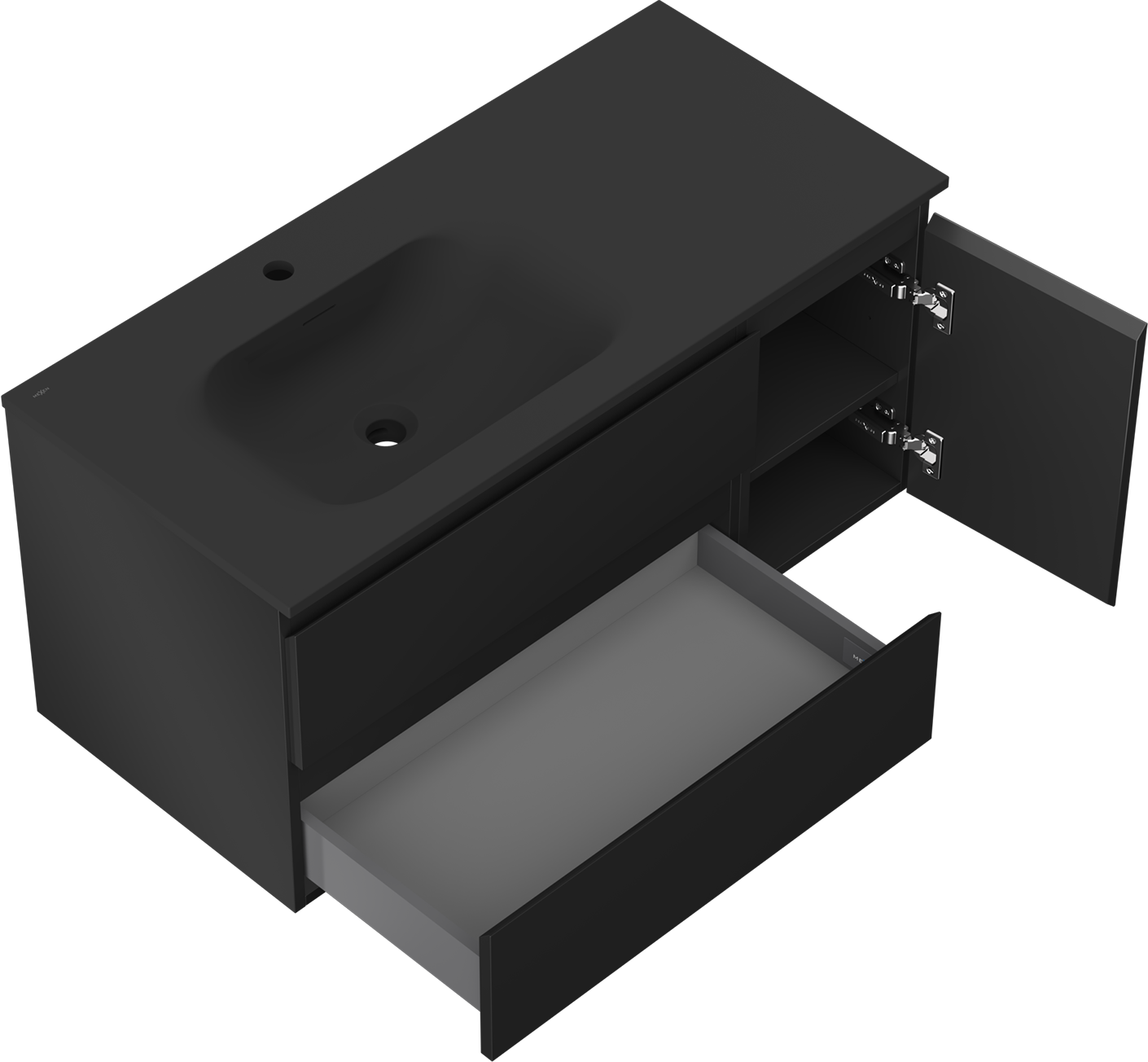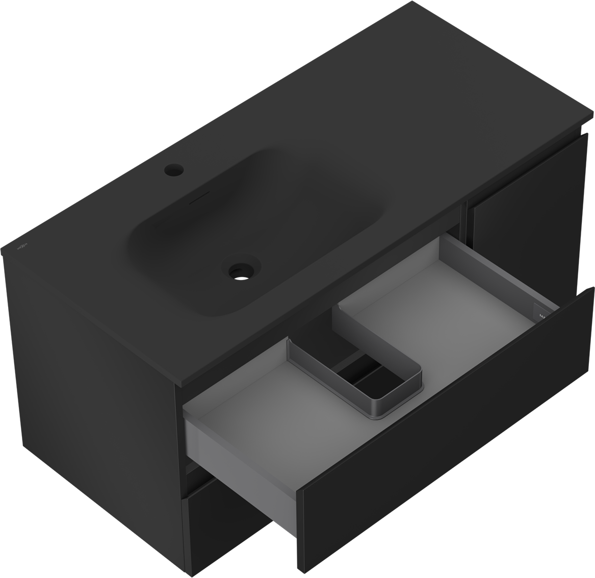 Mexen Orio badkamerkast 100 cm met wastafel Vela links, 2S, 1D, zwart mat - 91A13-10047-3-BBFFF71-W23L71