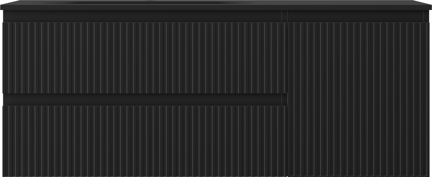 Mexen Rivel badkamerkast 120 cm met wastafel Vela links, 2S, 1D, geribbeld, zwart mat - 91A23-12047-3-BBFFF71-W23L71
