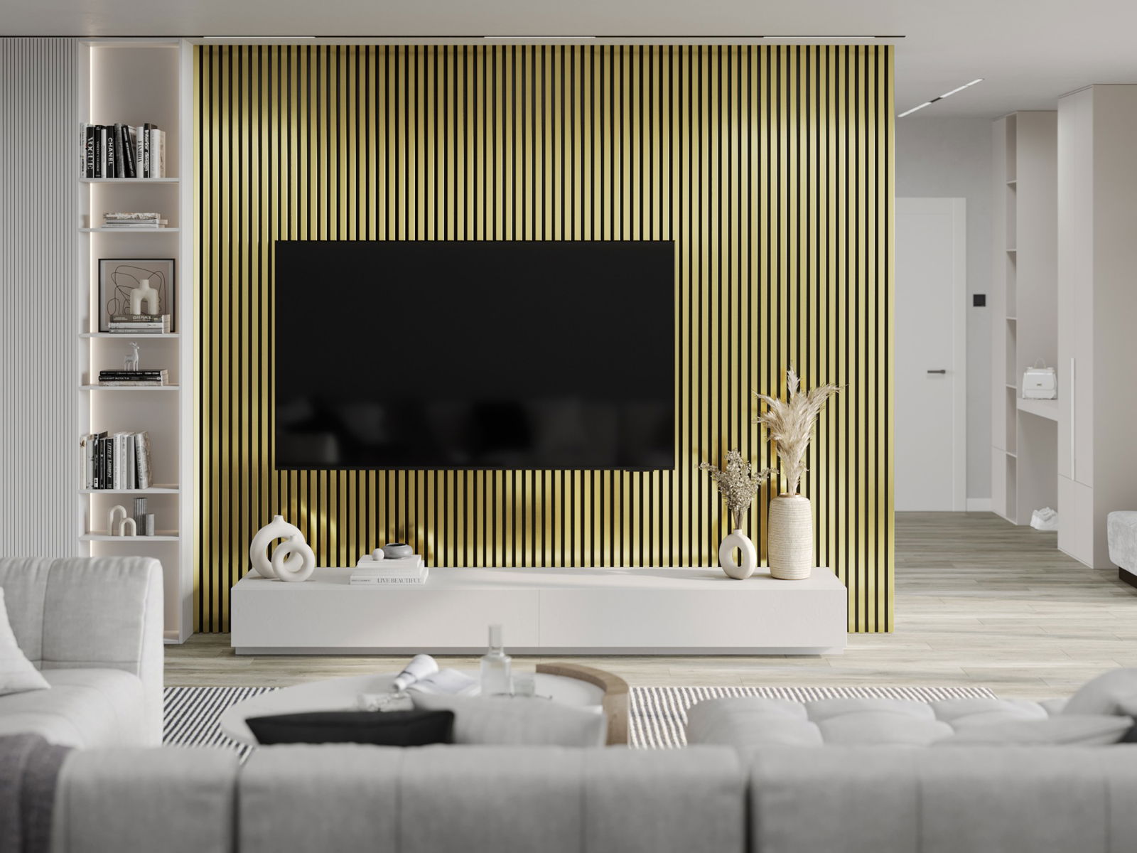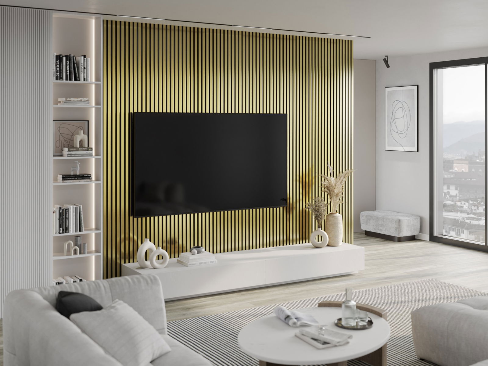 Mexen Lam-F muur lamellen akoestisch 275 x 31,5 cm, vilt 6 mm, Goud - S105-275317-2812-057