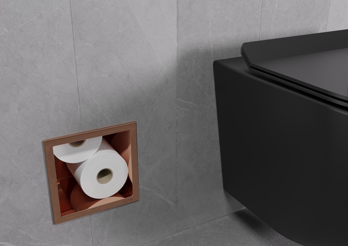 Il faut admettre qu'un porte-rouleau de papier toilette en couleur or rose est une proposition assez atypique! Alors, dans quel intérieur ce modèle se retrouvera-t-il? Vous pouvez facilement associer l'or rose avec les couleurs les plus simples, comme le noir, le blanc ou le gris. En leur compagnie, il se distinguera et attirera le regard. En ce qui concerne les motifs, cette couleur peut créer une composition intéressante avec des carreaux représentant une mosaïque ou ceux imitant le marbre. Cette combinaison attirera l'attention de chacun! Pour que l'intérieur ait la meilleure apparence possible, choisissez également d'autres éléments dans cette couleur originale. Cela peut être un système de douche, un robinet de lavabo ou un miroir, ainsi que des petits accessoires simples, tels qu'un distributeur de savon, un gobelet pour brosses à dents, des bougies ou des serviettes. Cependant, ne surchargez pas avec trop d'éléments or rose, car cette couleur est assez vive et peut dominer l'intérieur. En quantité appropriée, elle vous permettra de créer une salle de bain unique et sans égale qui plaira à tout le monde!